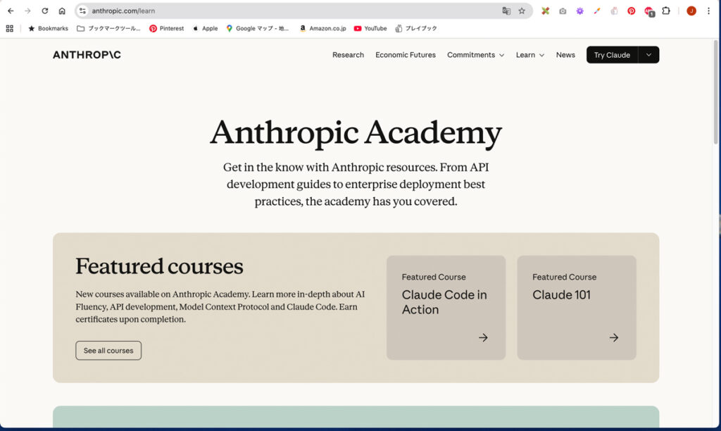 Claude AI でおなじみのAnthropicが公開している無料AI学習プラットフォーム「Anthropic Academy」で学習を始めました。